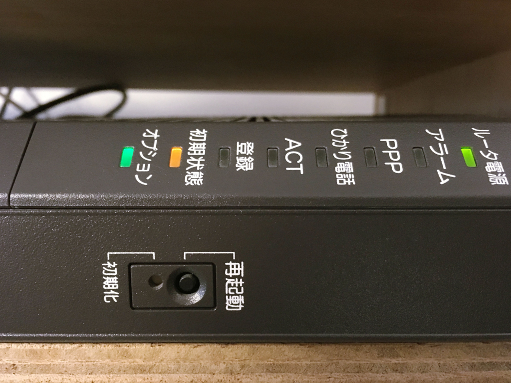 アナウンスのとおり、1時間ほどで回線終端装置のステータスランプが変化した。
